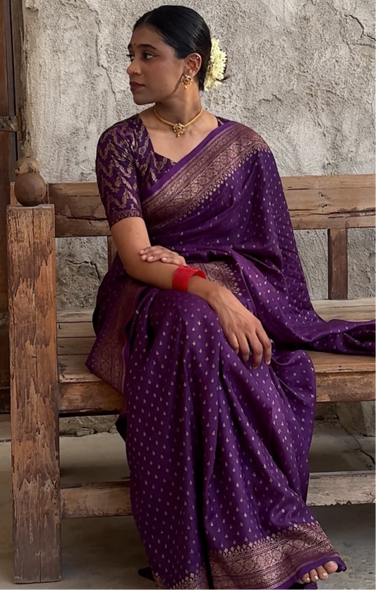 PURPLE PURE VISCOSE CREPE SILK SAREE
