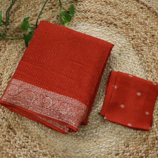 RUSTY ORANGE VISCOSE CREPE SILK SAREE