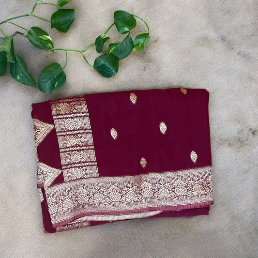 MAROON KHADDI BANARASI GEORGETTE SAREE