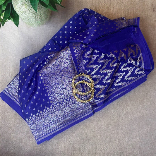 NAVY BLUE PURE CREPE BANARASI SILK SAREE