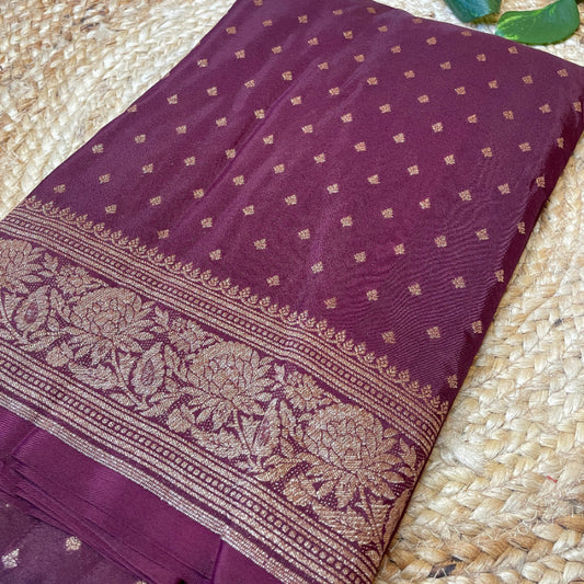 RED AND PURPLE PURE CREPE BANARASI SAREE