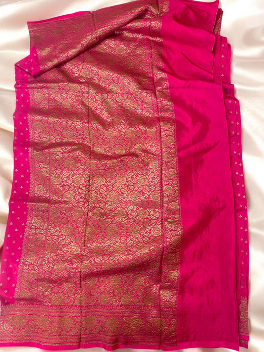 RANI PINK PURE CREPE BANARASI SILK SAREE