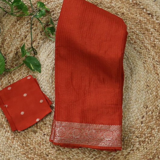 RED VISCOSE CHINNON CREPE SILK SAREE