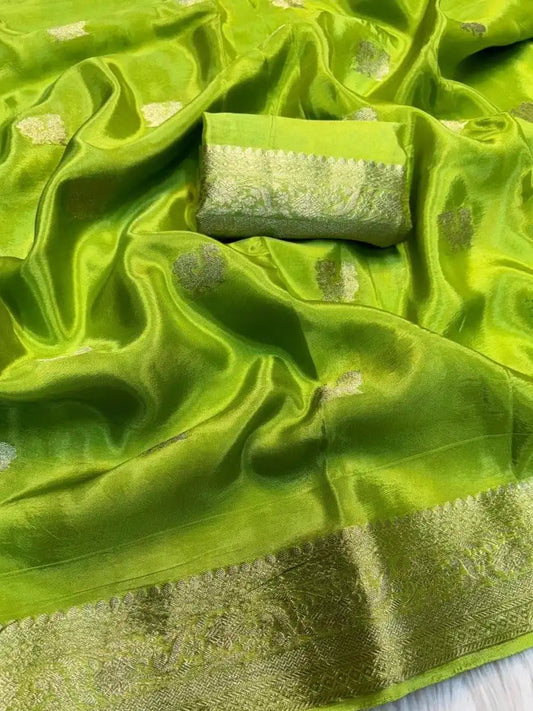 Sold outGREEN VISCOSE CREPE SILK SAREE
