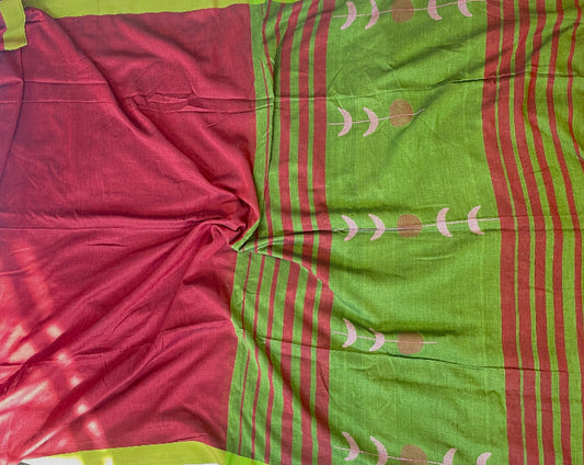 RED AND GREEN MARSHMALLOW PRINTED SAREE