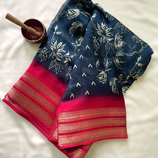 PINK AND GREEN BLUE 3D PREMIUM CREPE SILK SAREE