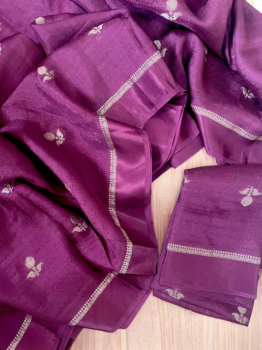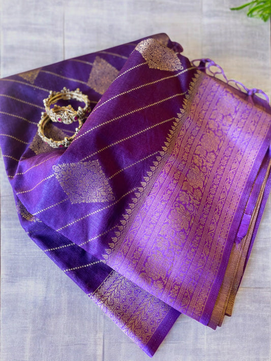 Sold outPURPLE LAVANDER SEMI BANARASI SAREE