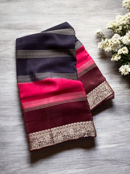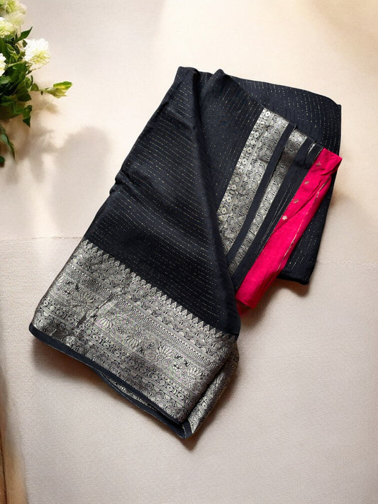 BLACK AND PINK PREMIUM SEMI CREPE SILK SAREE