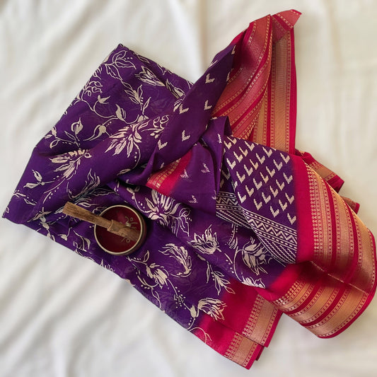 FLORAL PRINTED SEMI MYSORE CREPE SILK SAREE