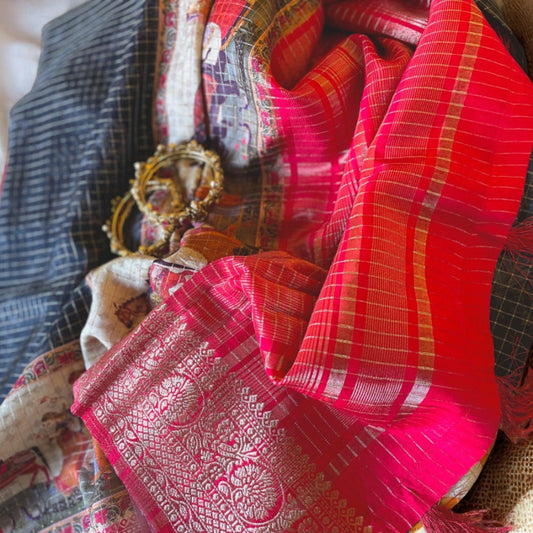 WINE VISCOSE KHADI SILK SATIN BORDER SAREE
