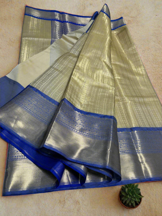 Sold outIVORY AND BLUE BORDER SEMI KANCHI