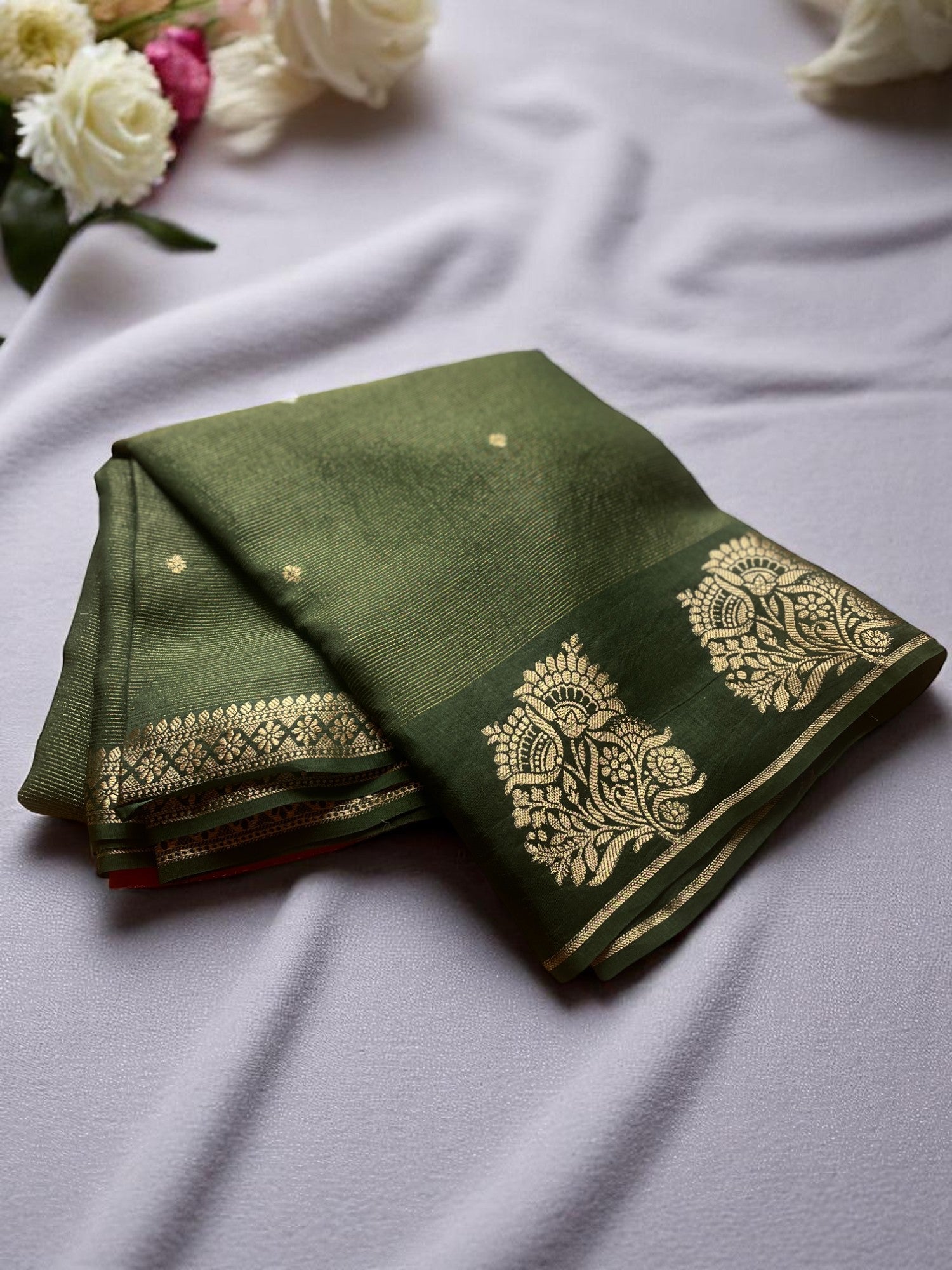 MEHANDI GREEN TEMPLE DOLA SILK SAREE