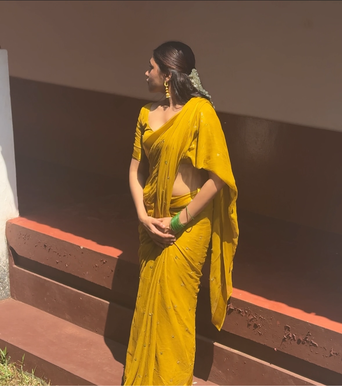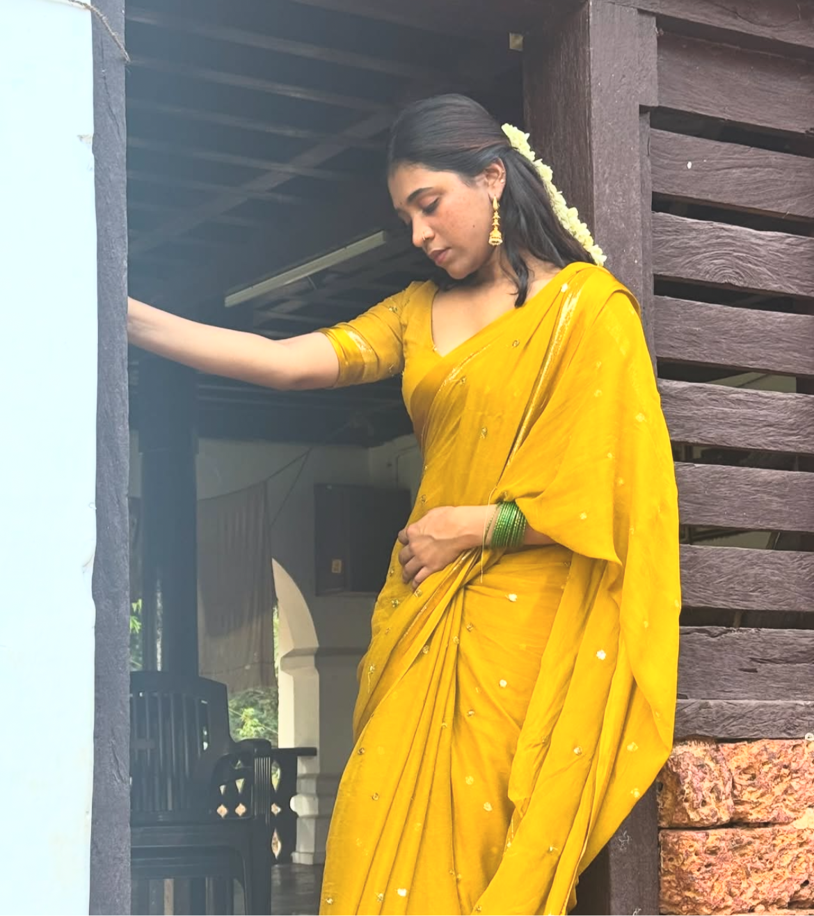 MUSTURD YELLOW VISCOSE GEORGETTE SAREE- PRE ORDER