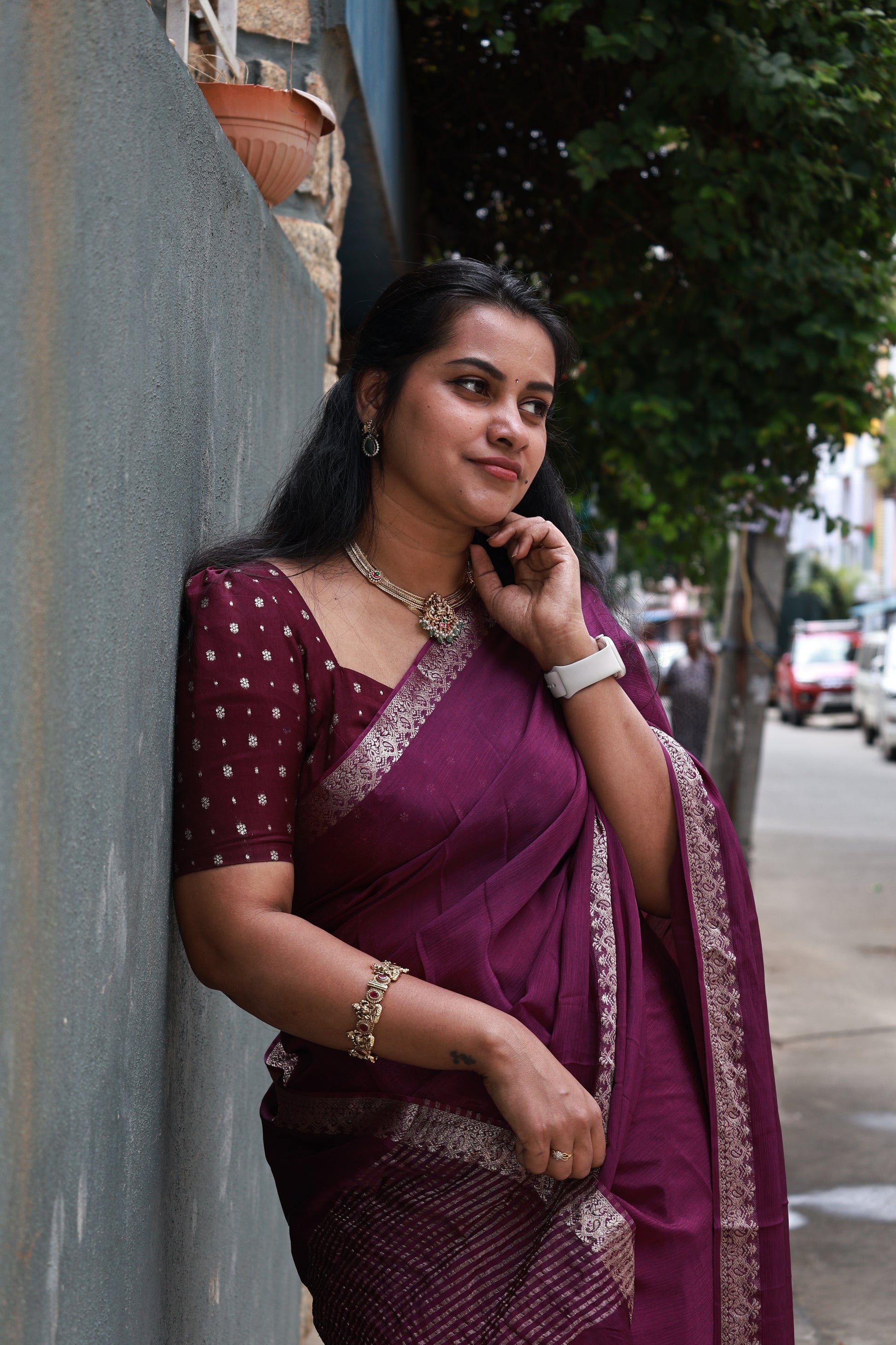 PLUM PURE WRINKLE CREPE CHIFFON SAREE