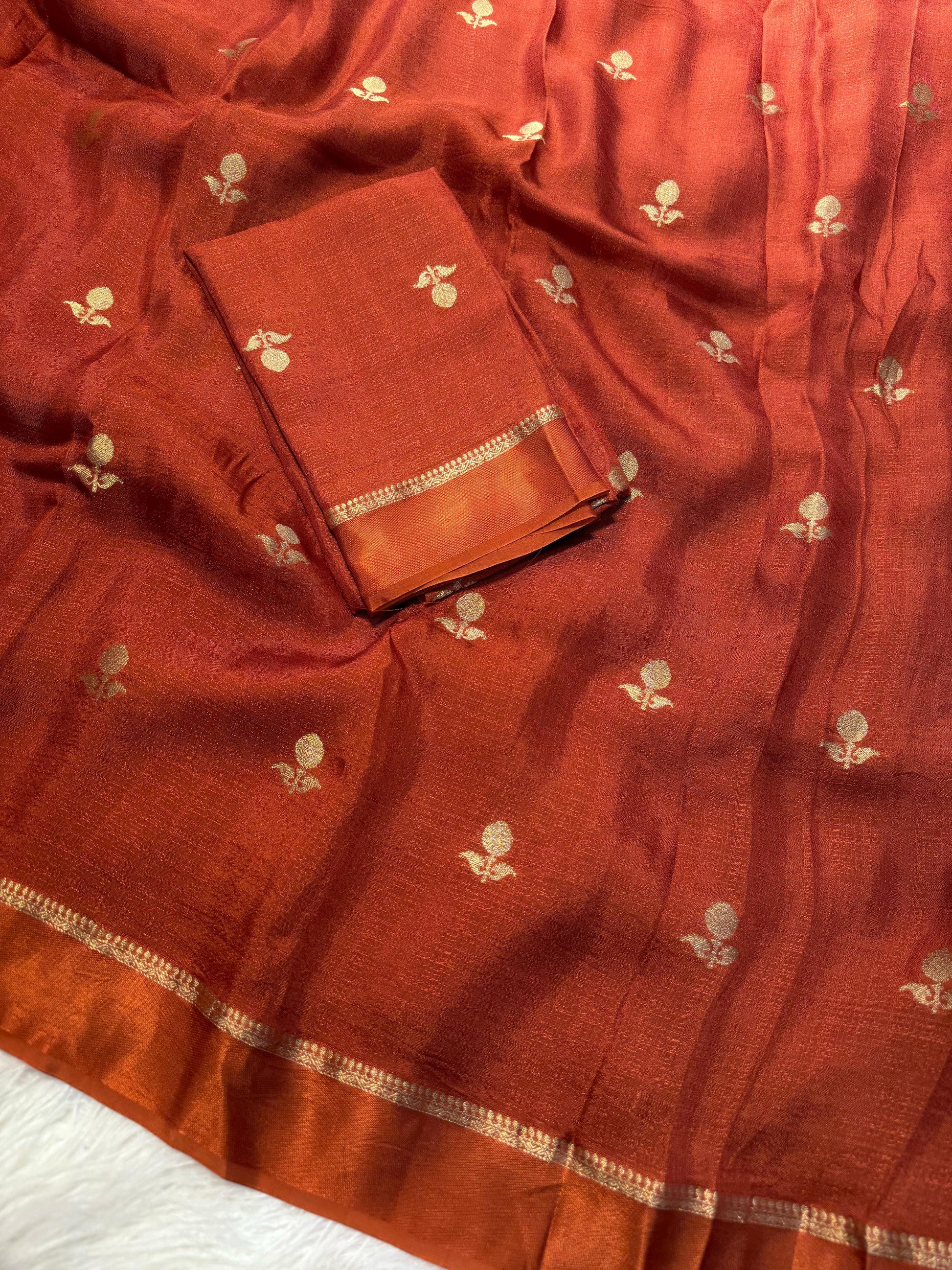 RUSTY ORANGE VISCOSE KHADI SILK SATIN BORDER SAREE