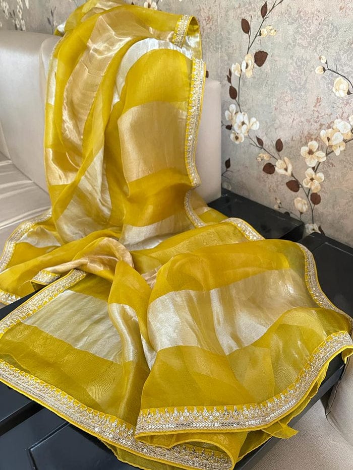 YELLOW DESIGNER PURE TISSUE BANARASI SAREE